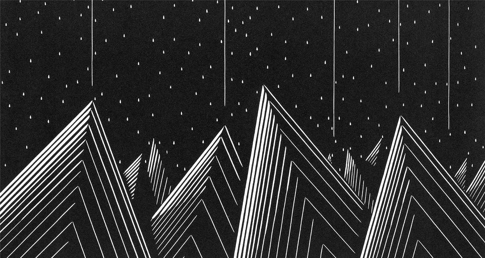 My mural work is an extension of my printwork—although I’m using paint, the line work is very similar to the marks I make with a gouge in linoleum. Just as the linoleum I’ve carved leaves an impression on the paper, similarly I hope the mural leaves an impression of my respect for the landscape.